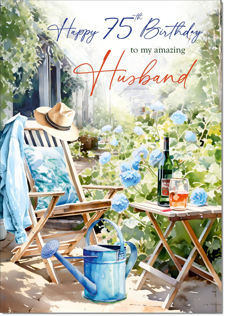 Husband 75th Birthday Card Age 75 Relax in the Garden