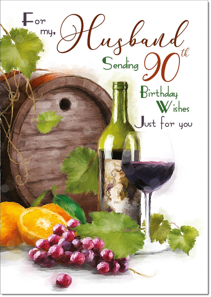 Husband 90th Birthday Card Age 90 Wine Vineyard