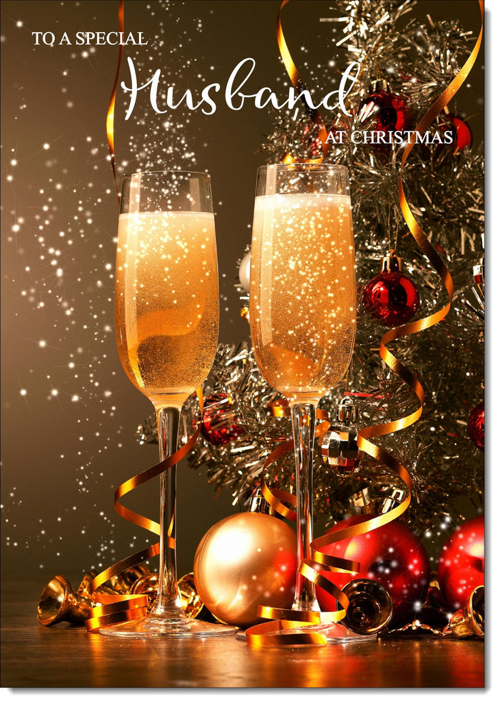 Husband Christmas Card Two Champagne Glasses