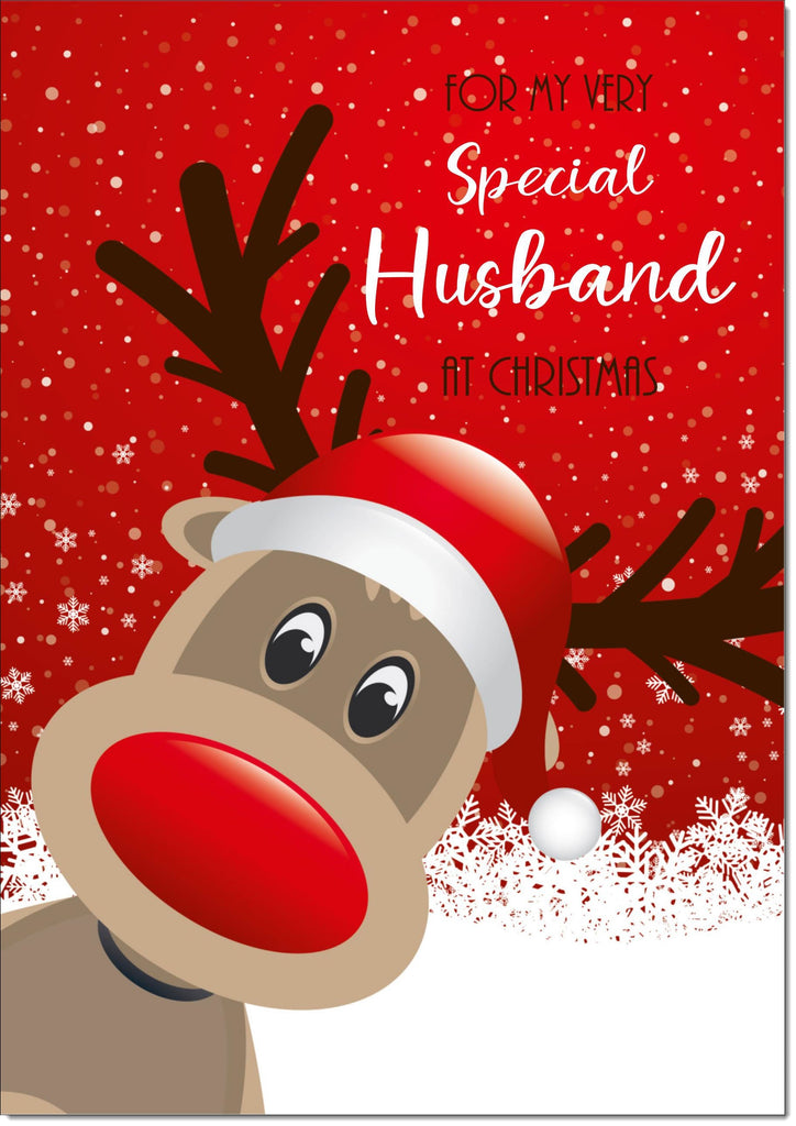 Husband Christmas Card Rudolph on Red Background
