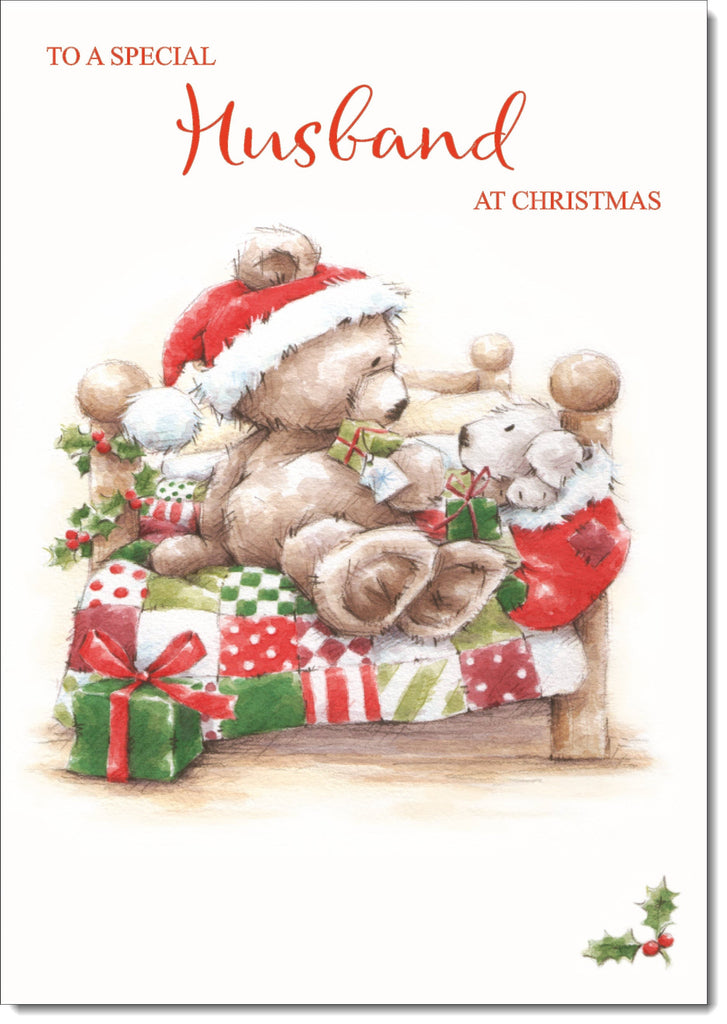 Husband Christmas Card Cute Bear on Bed