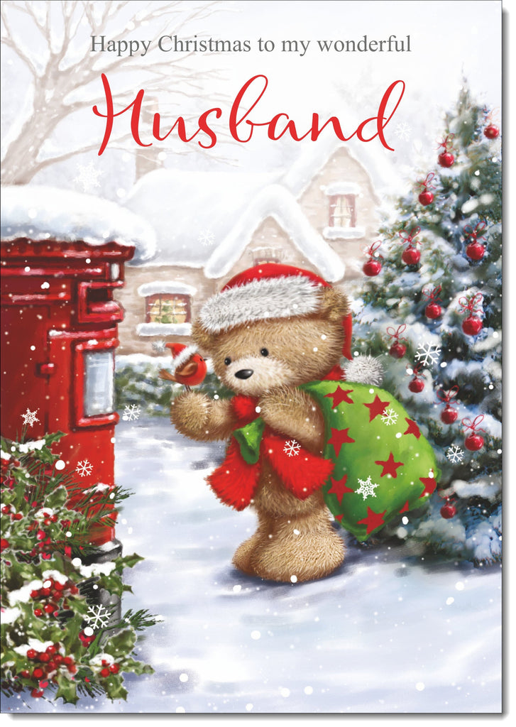 Husband Christmas Card Cute Bear at Post Box