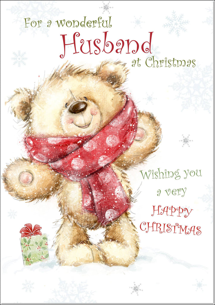 Husband Christmas Card Teddy Bear With Red Scarf