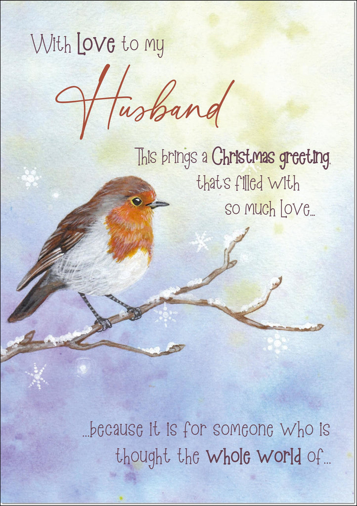 Husband Christmas Card Robin in Winter Scene