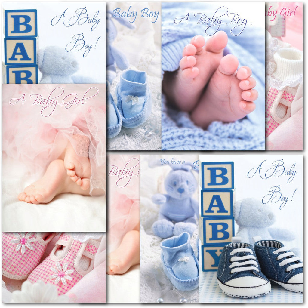 Pack of 60 Mixed C50 Small Size New Baby Boy & Girl Cards - Birth Congratulations