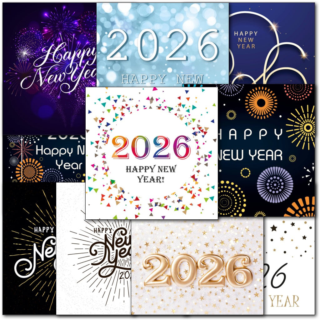 Pack of 60 Mixed C60 Square Happy New Year Cards