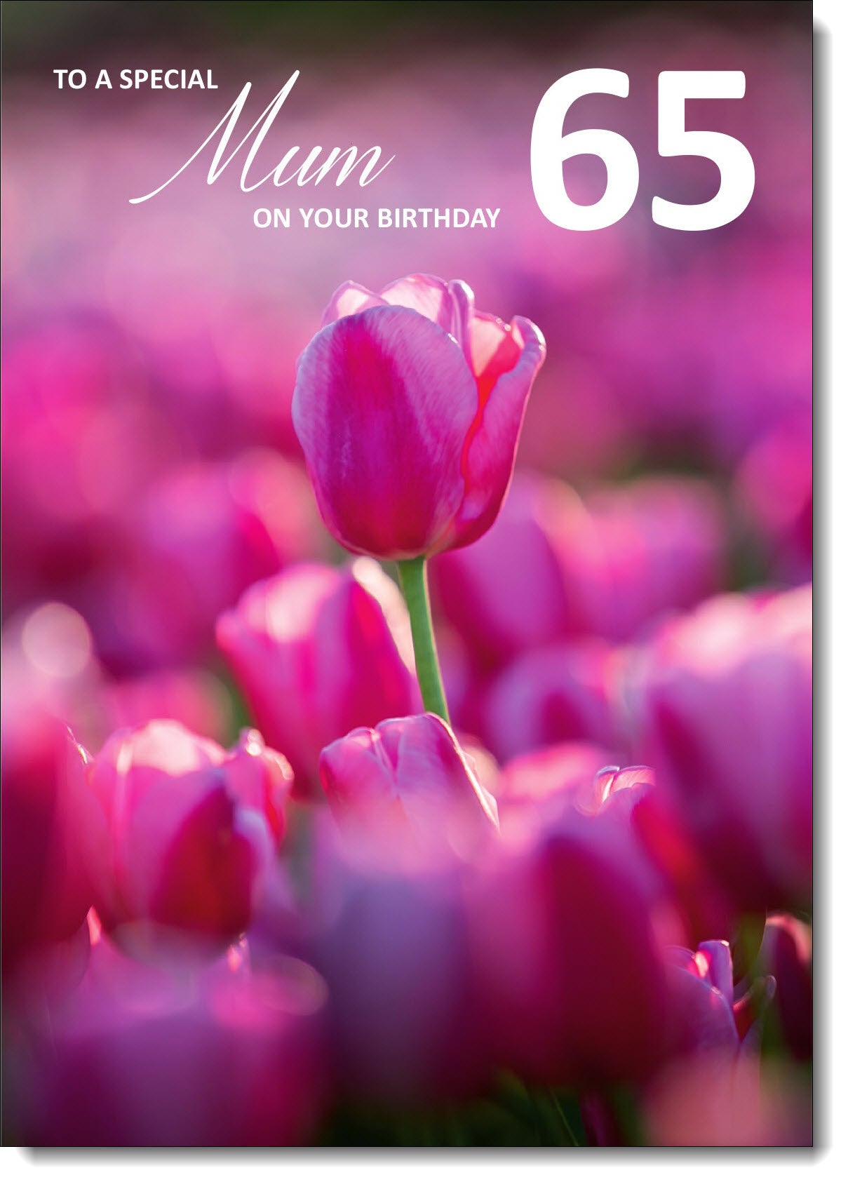Mum 65th Birthday Card Age 65 Pink Tulip Field