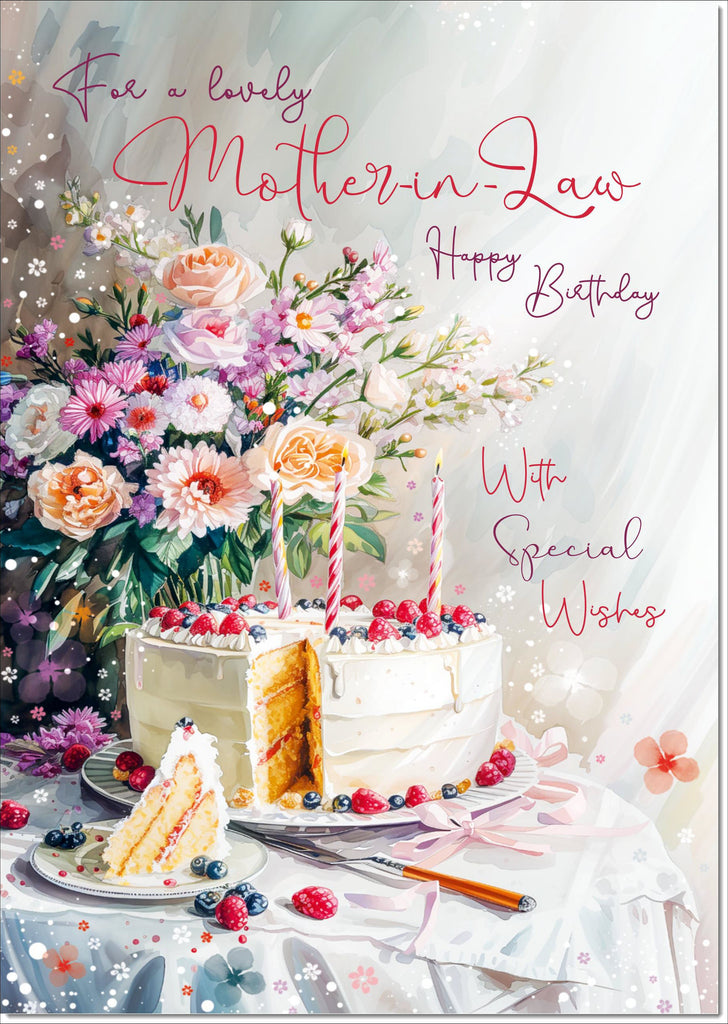 Mother-in-Law Birthday Card Birthday Cake and Flowers
