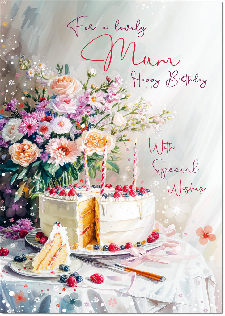 Mum Birthday Card Birthday Cake and Flowers