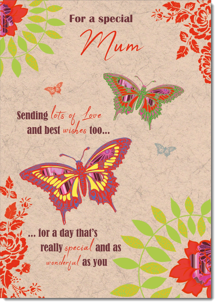 Mum Birthday Card Butterflies and Flowers