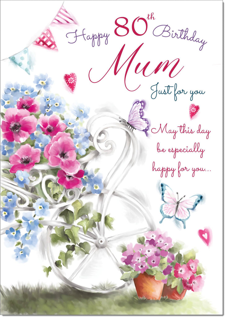 Mum 80th Birthday Card Age 80 Garden Wheelbarrow Bouquet