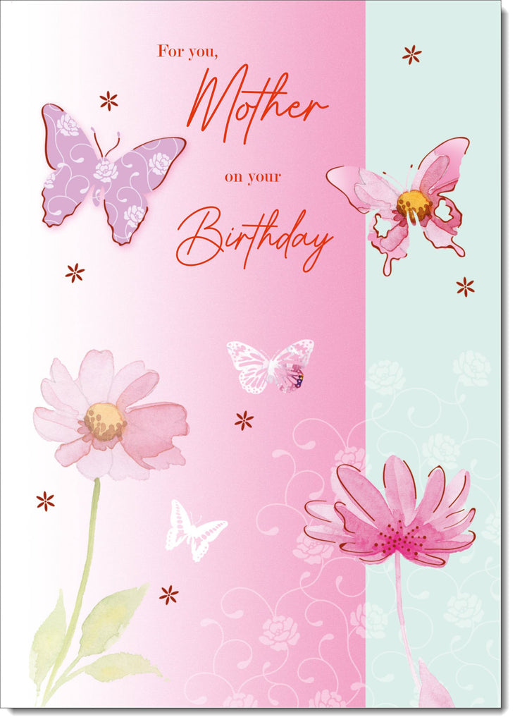 Like a Mum Birthday Card Poppies and Blue Butterflies