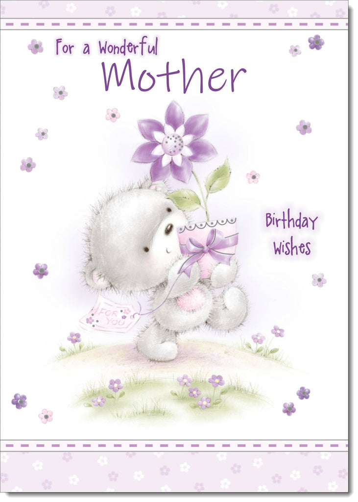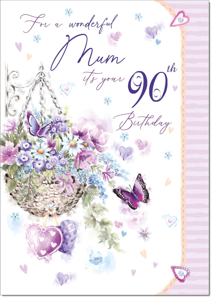 Mum 90th Birthday Card Age 90 Purple Hanging Basket
