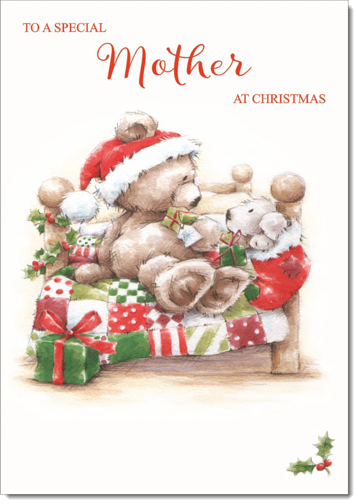 Mother Christmas Card Cute Bear on Bed