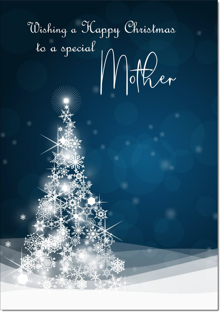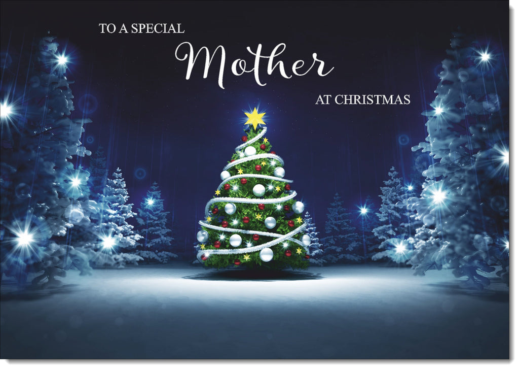 Mother Christmas Card Christmas Tree Lights in Dark Sky