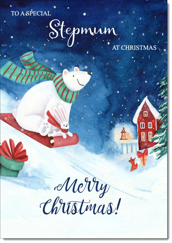 Stepmum Christmas Card Cute Rabbit with Parcels