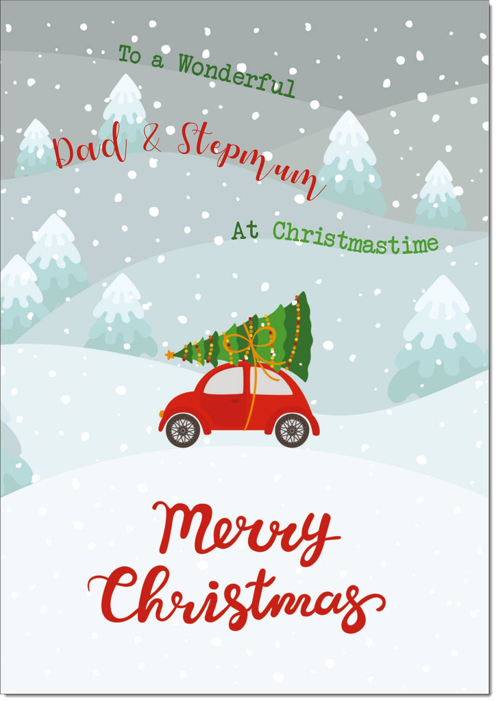 Dad & Stepmum Christmas Card Christmas Tree on Car