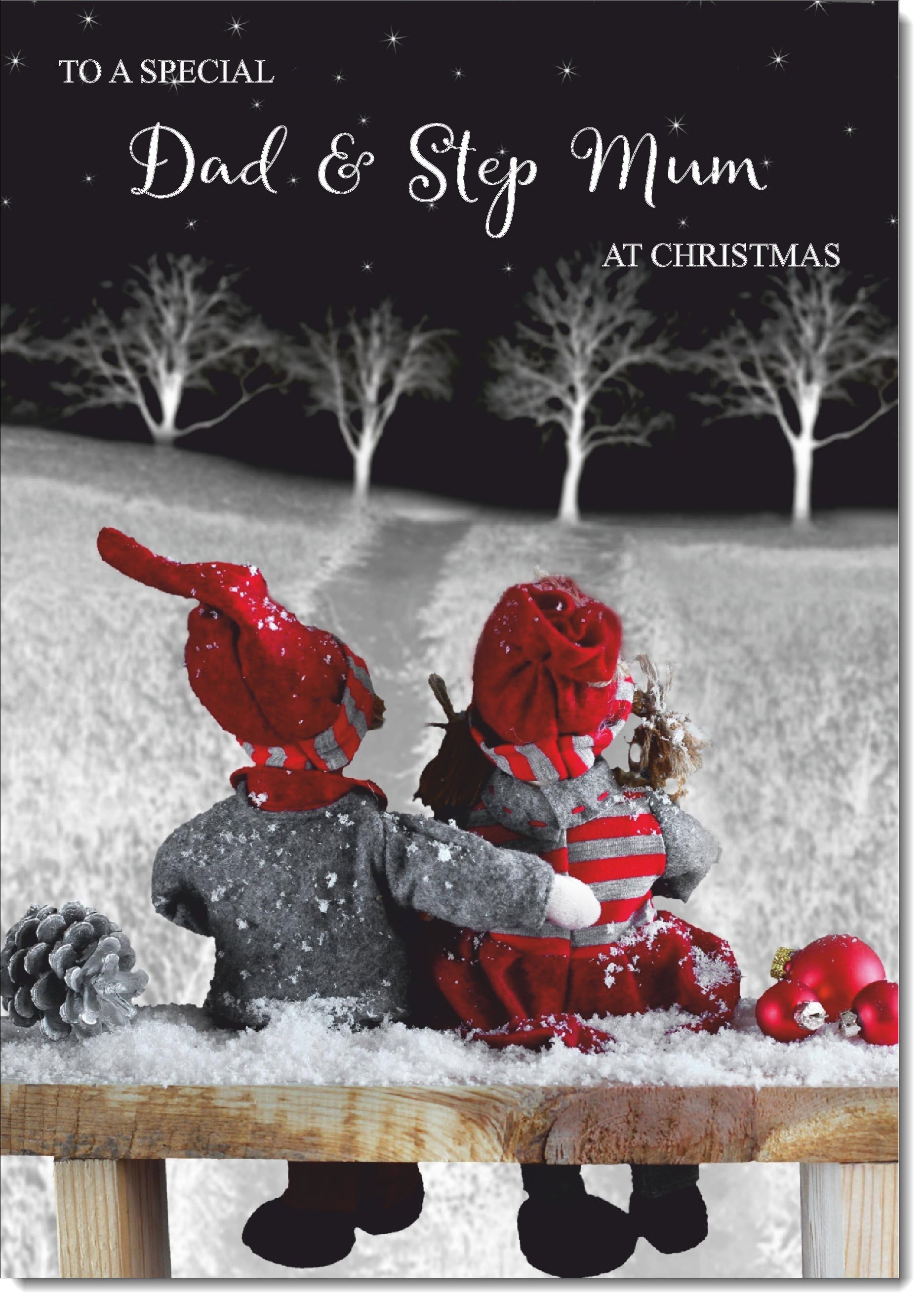 Dad & Stepmum Christmas Card Cute Couple on a Snowy Night