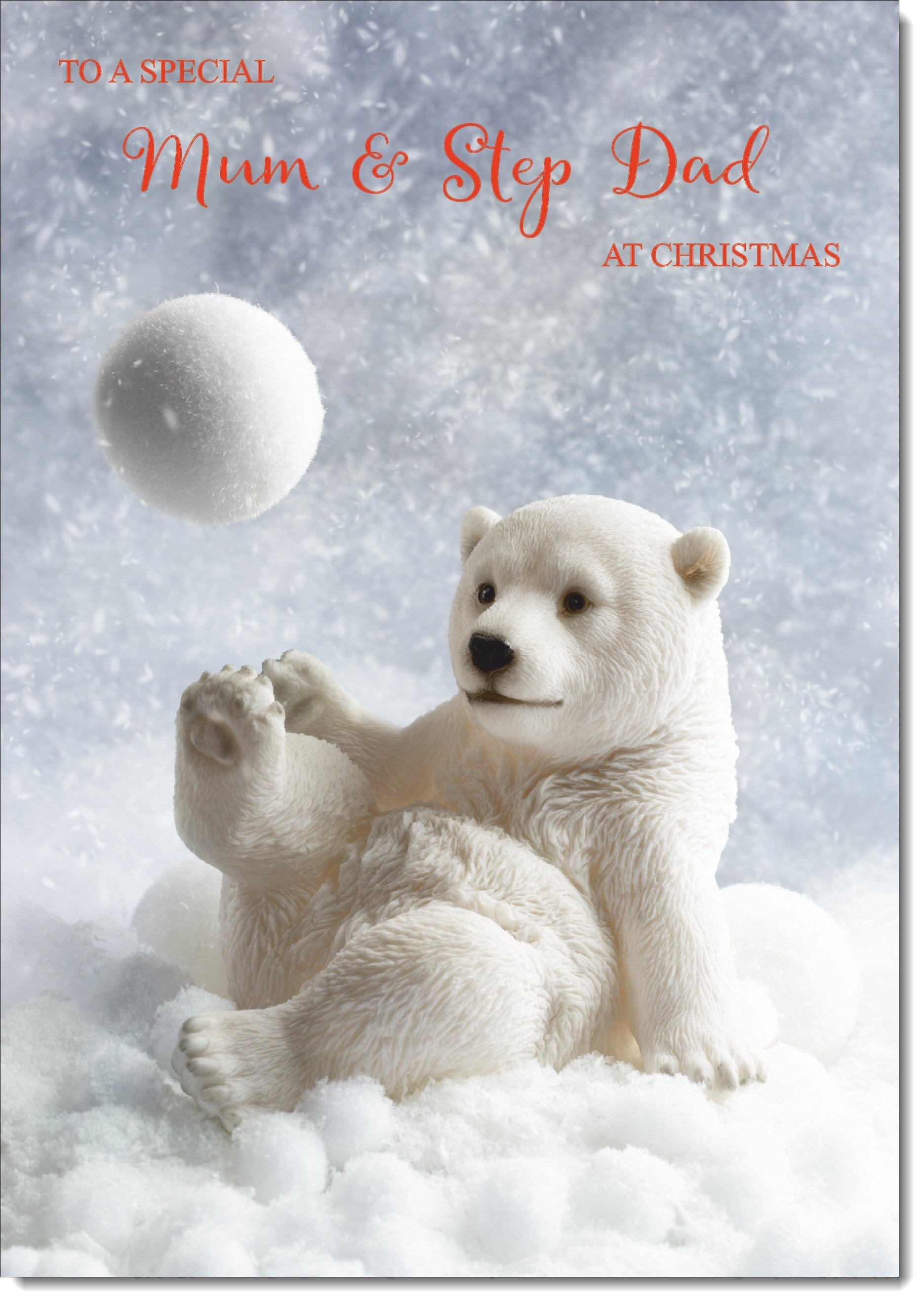 Mum & Stepdad Christmas Card Polar Bear and Snowball