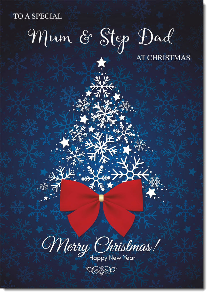 Mum & Stepdad Christmas Card Christmas Tree and Parcels