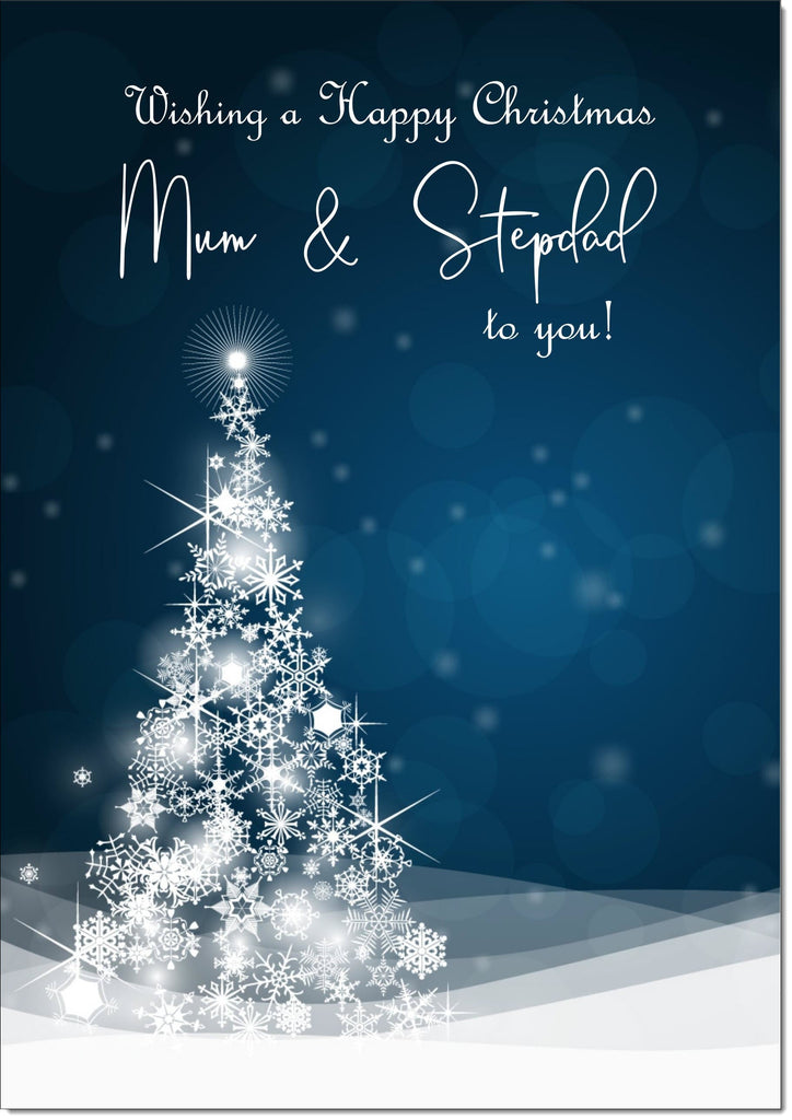 Mum & Stepdad Christmas Card Blue Abstract Christmas Tree
