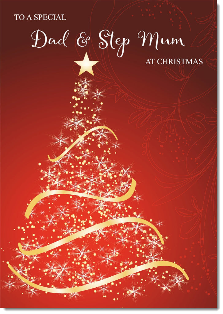 Dad & Stepmum Christmas Card Red Abstract Christmas Tree