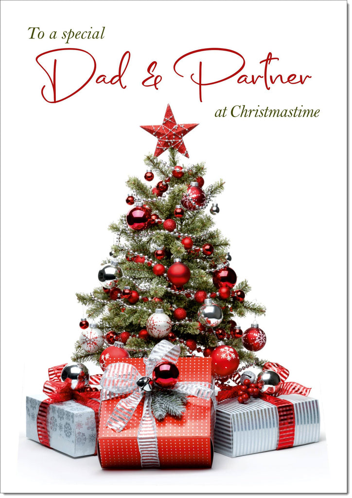 Dad & Partner Christmas Card Christmas Tree and Parcels