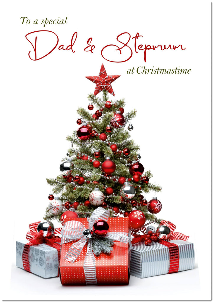 Dad & Stepmum Christmas Card Red Christmas Tree