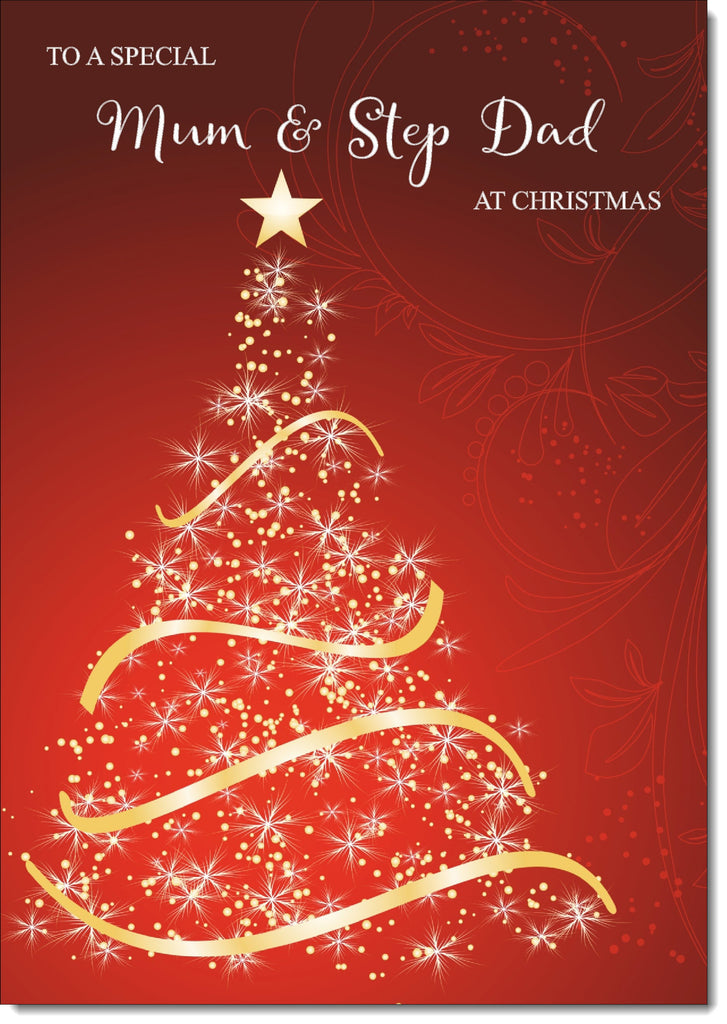Mum & Stepdad Christmas Card Gold Star Christmas Tree