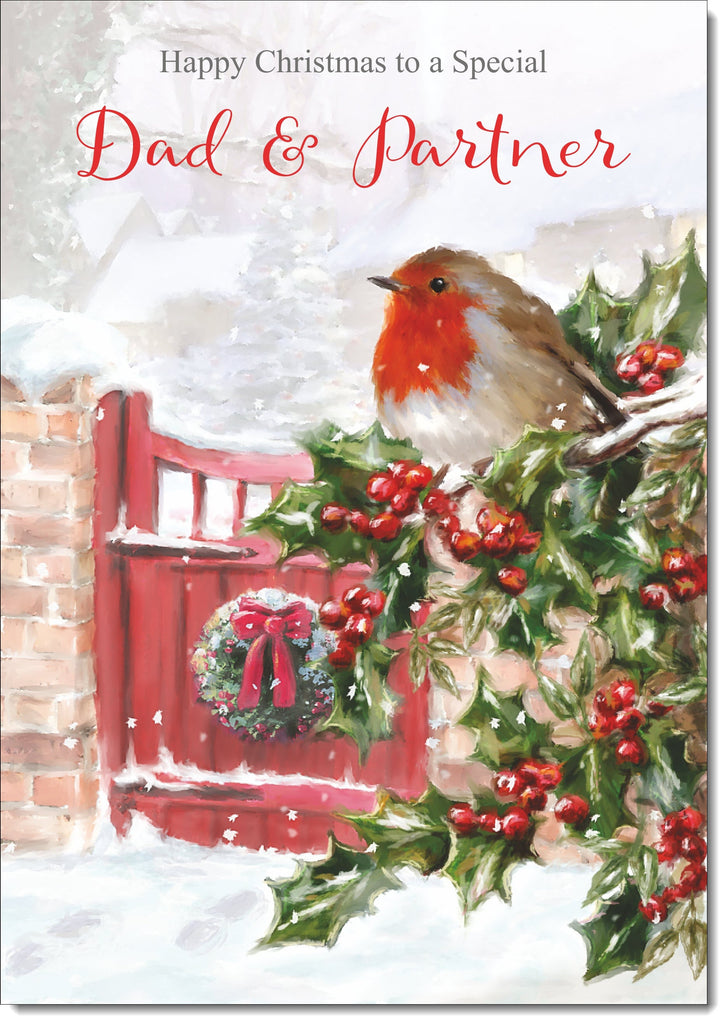 Dad & Stepmum Christmas Card Two Robins in Tree
