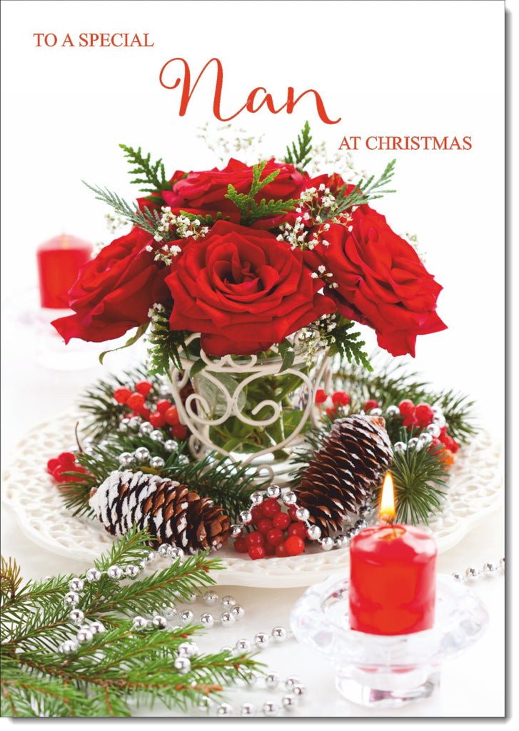 Nan Christmas Card Red Roses Christmas Arrangement