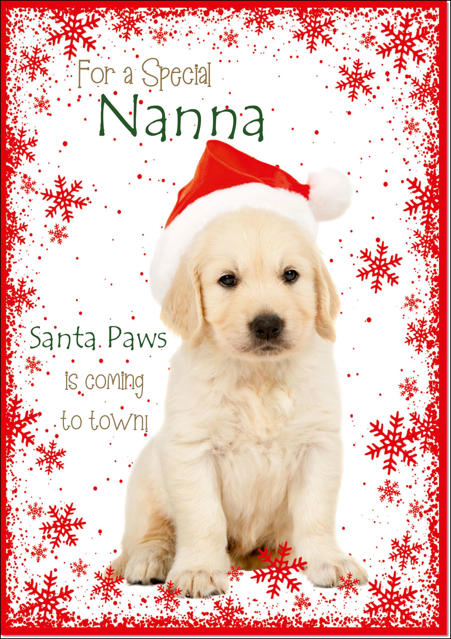 Nanna Christmas Card Cute Santa Paws Puppy Dog Pet
