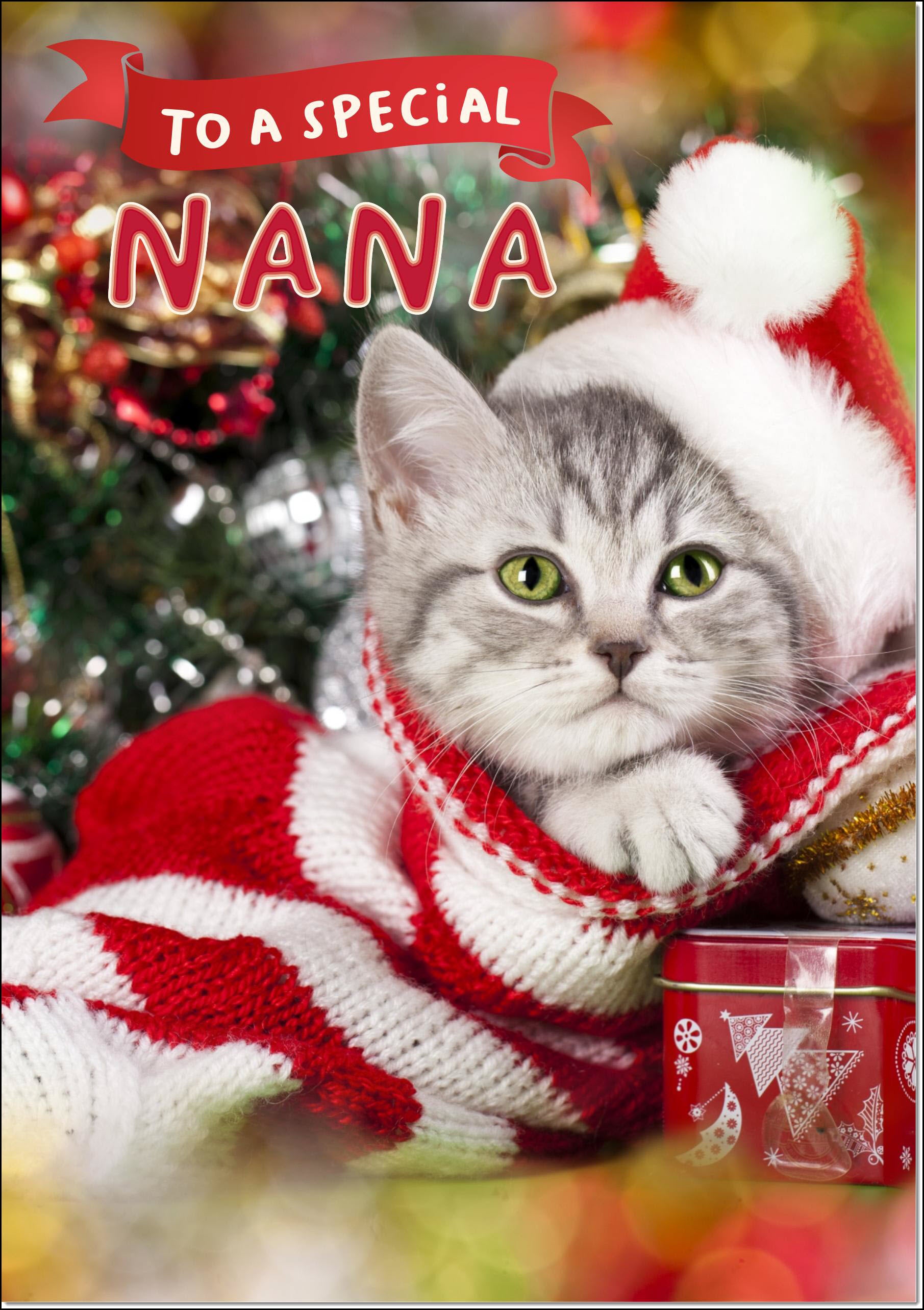 Nana Christmas Card Cute Santa Paws Kitten Cat Pet Christmas Hat
