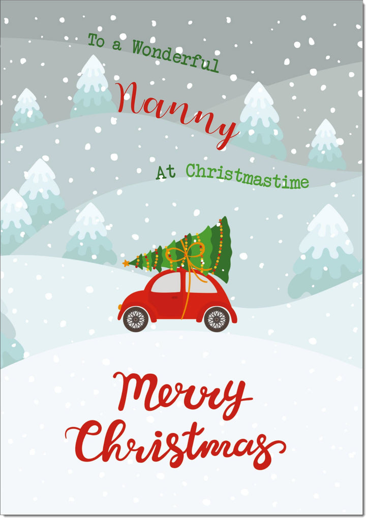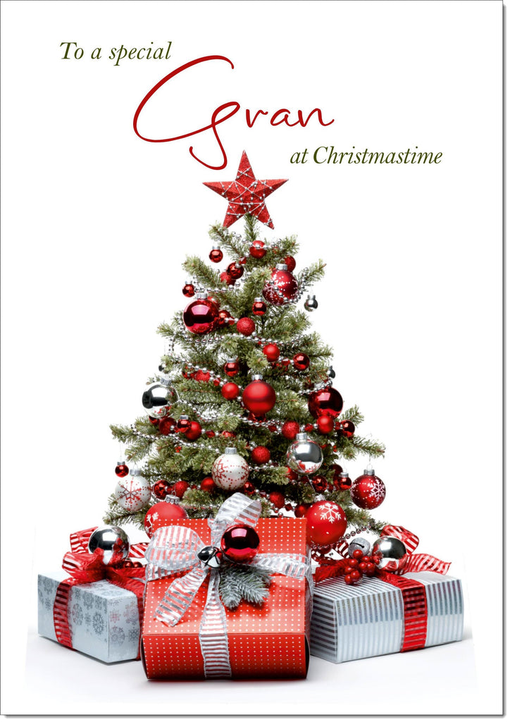 Nanna Christmas Card Red Snowflake Christmas Tree