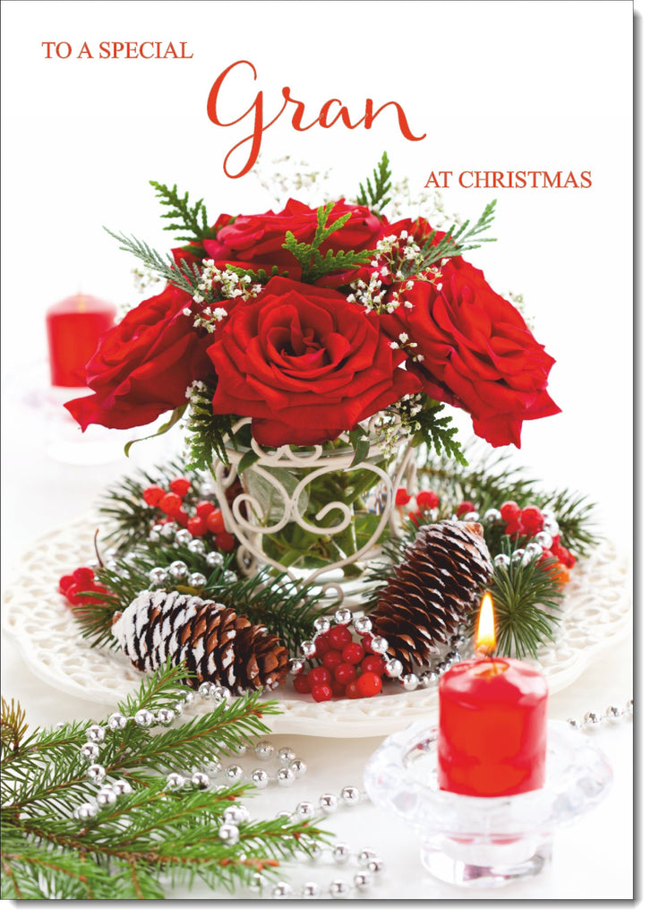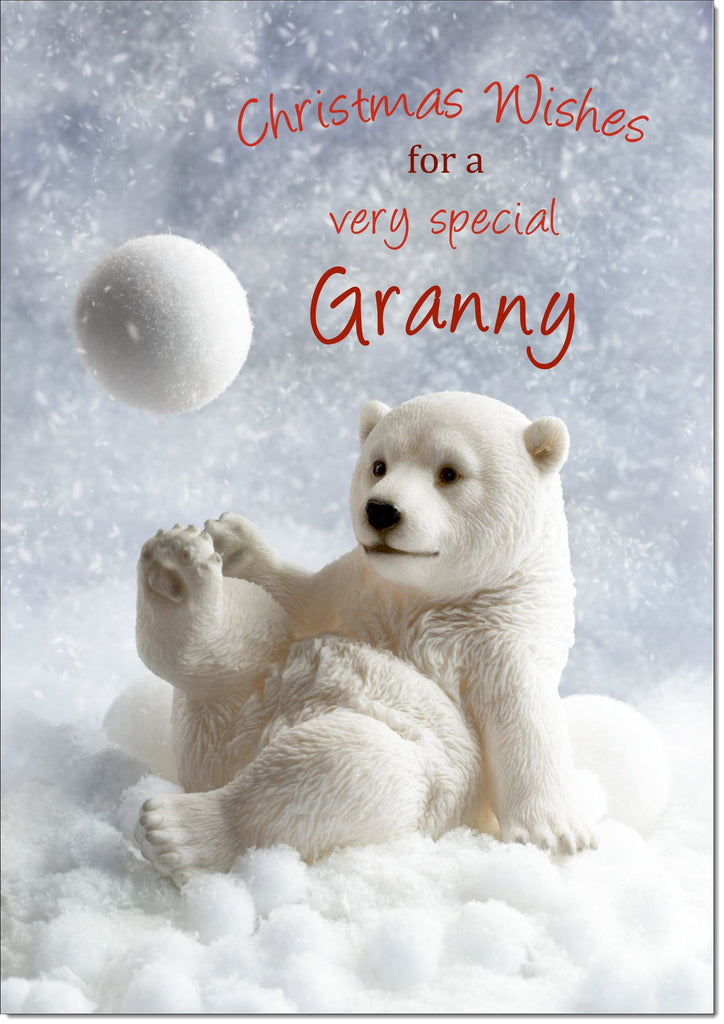 Gran Christmas Card Cute Bear in Christmas Parcel