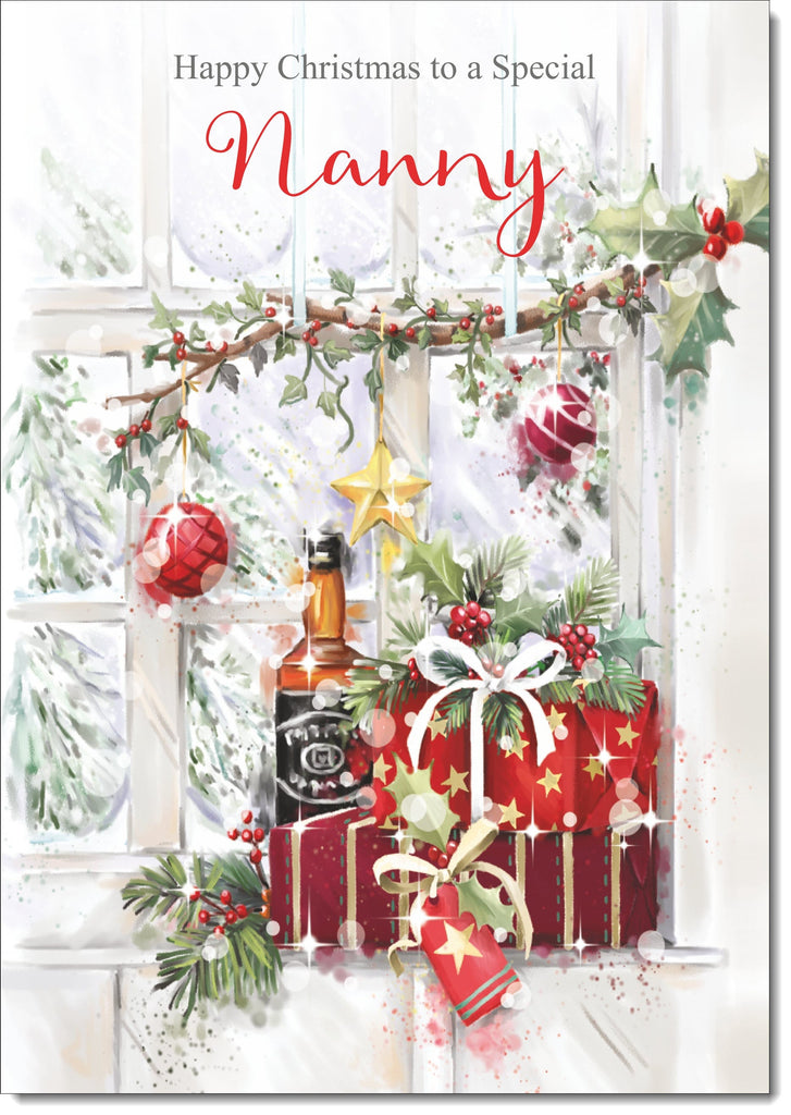 Nanna Christmas Card Cute Bear in Christmas Parcel