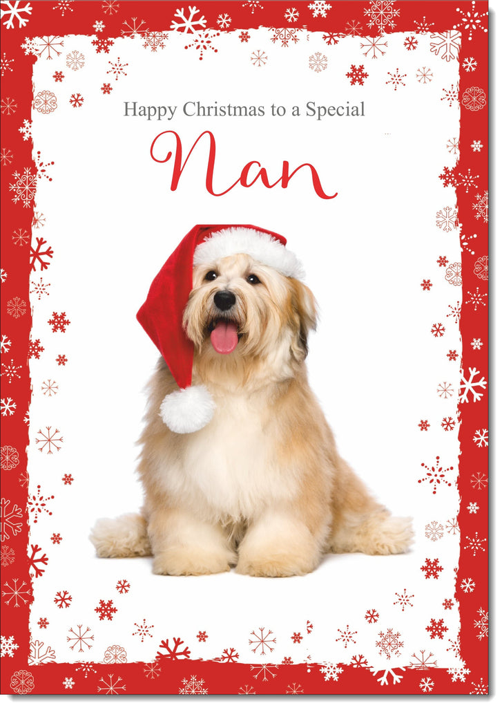 Nan Christmas Card Fluffy Dog in Santa Hat