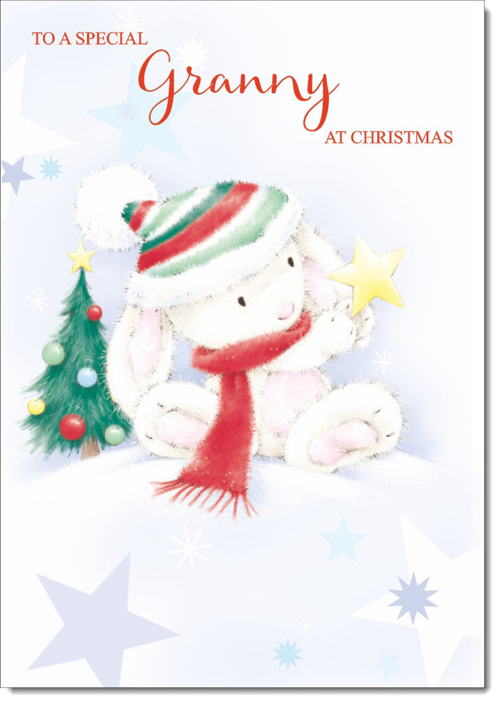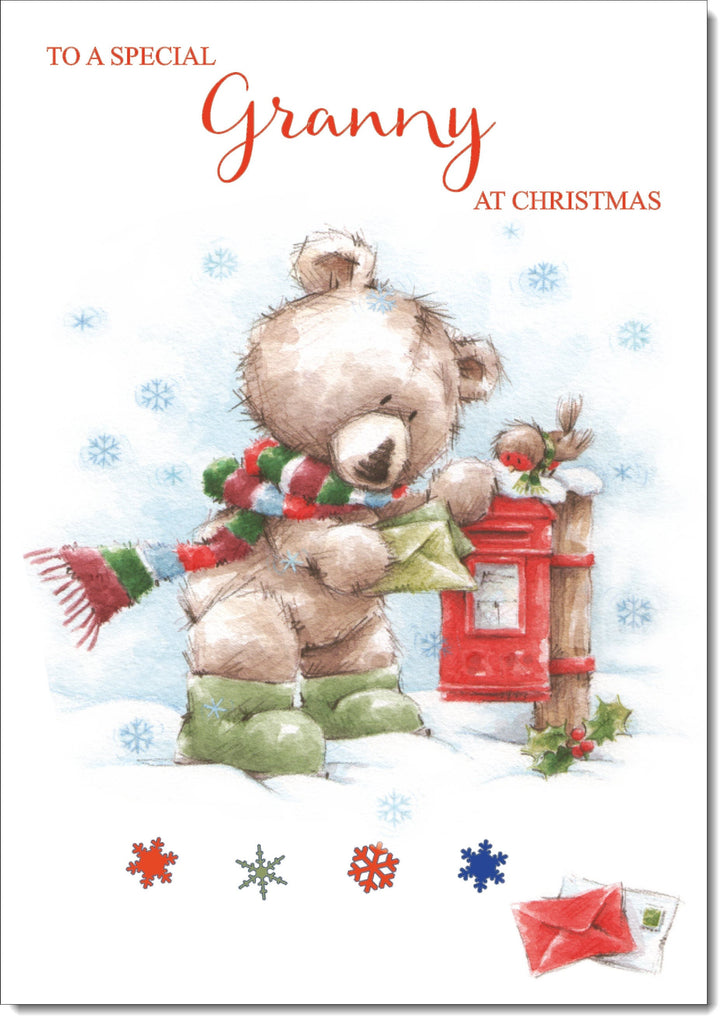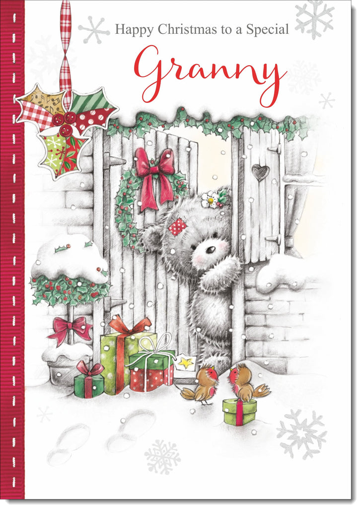 Nanna Christmas Card Teddy Bear With Red Scarf