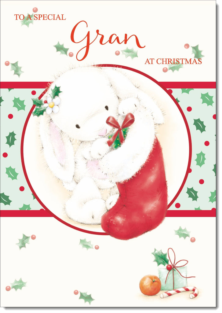 Nannie Christmas Card Cute Bear in Pink Bobble Hat