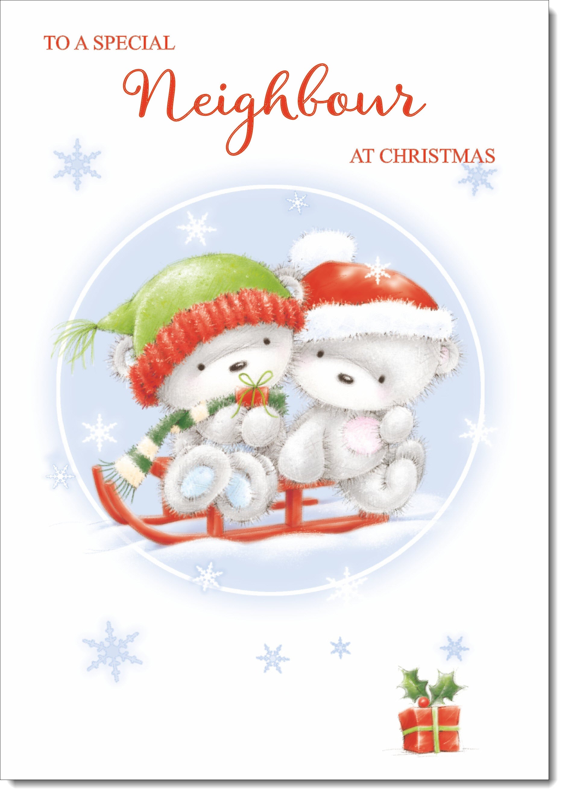 Neighbour Christmas Card Cute Bears on Sled