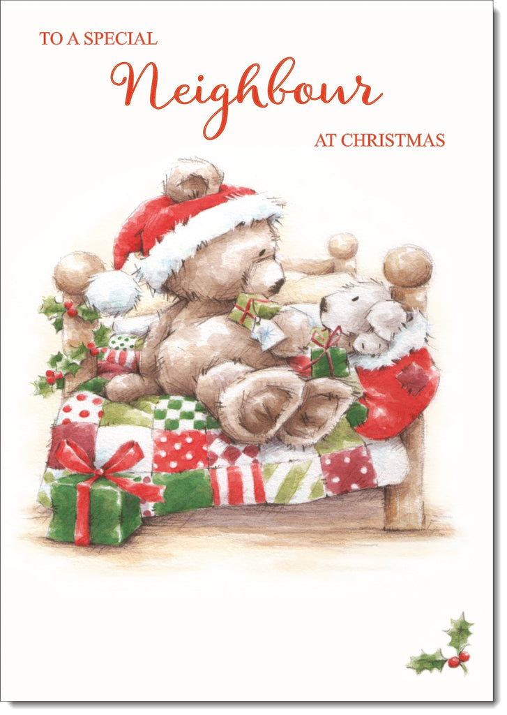 Neighbour Christmas Card Cute Bear on Bed