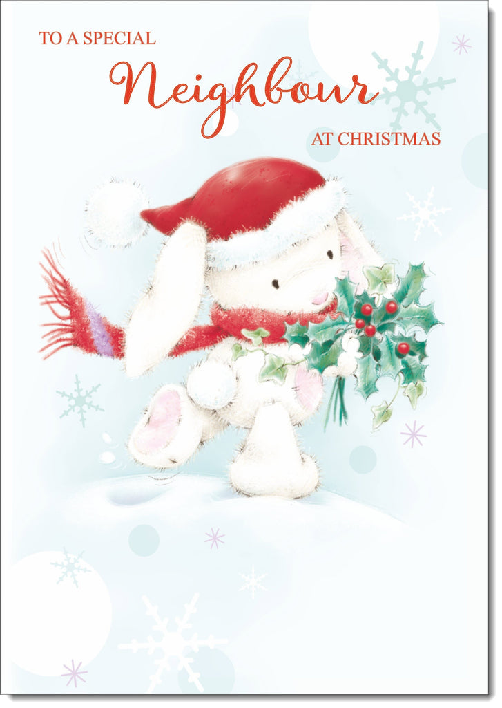 Neighbour Christmas Card Cute Rabbit with Holly