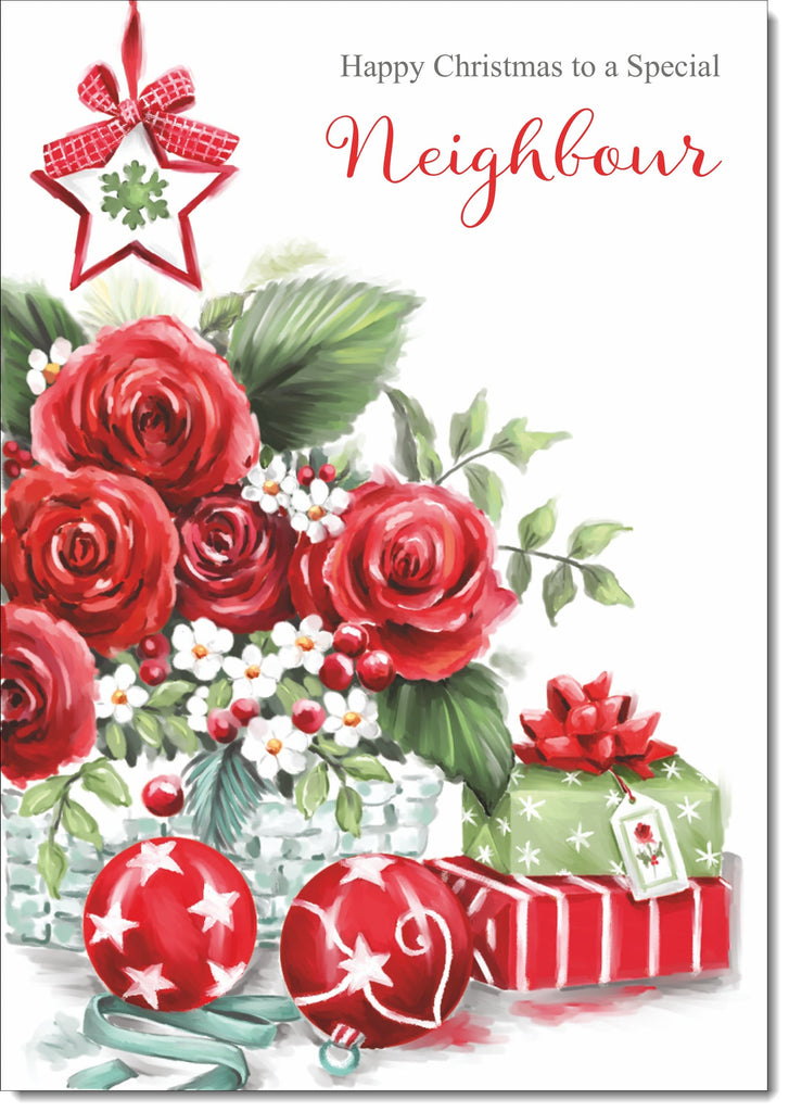 Neighbour Christmas Card Red Roses Christmas Arrangement