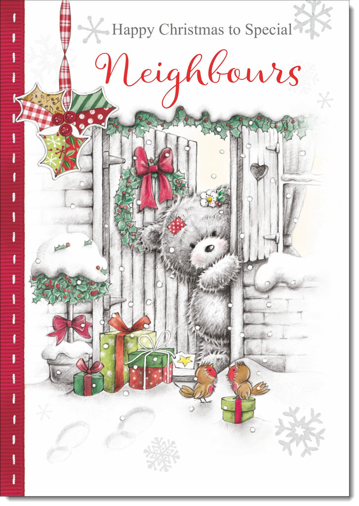 Neighbours Christmas Card Cute Bear in Christmas Parcel