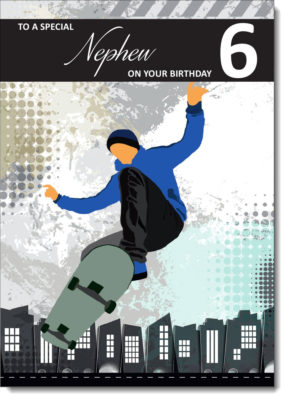 Nephew 6th Birthday Card Age 6 Skateboarding