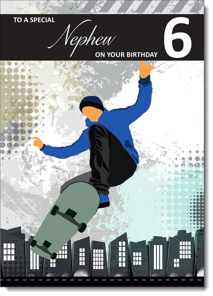 Nephew 6th Birthday Card Age 6 Skateboarding