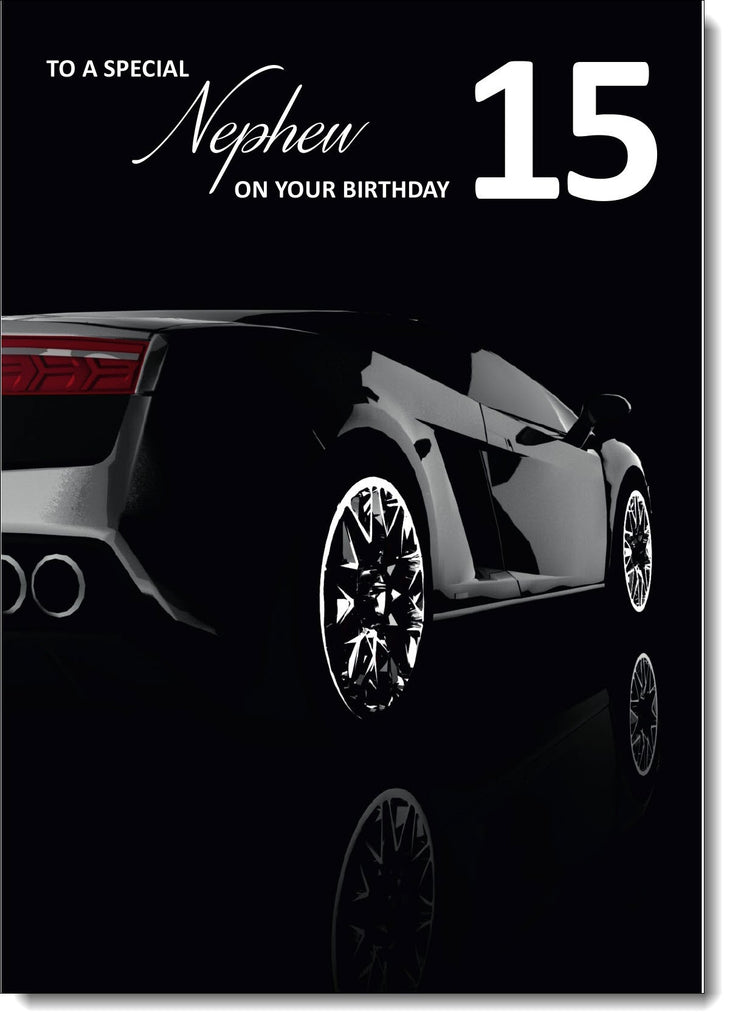 Nephew 15th Birthday Card Age 15 Black Lamborghini