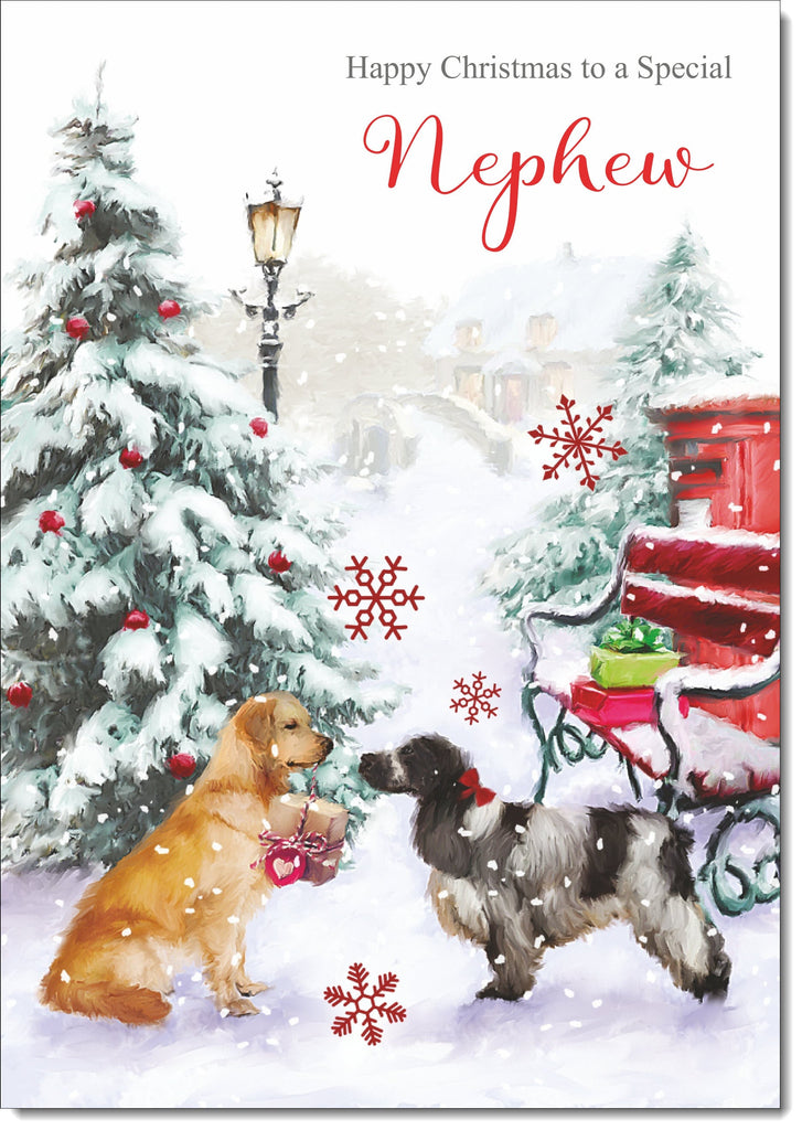 Nephew Christmas Card Cute Santa Paws Puppy Dog Pet