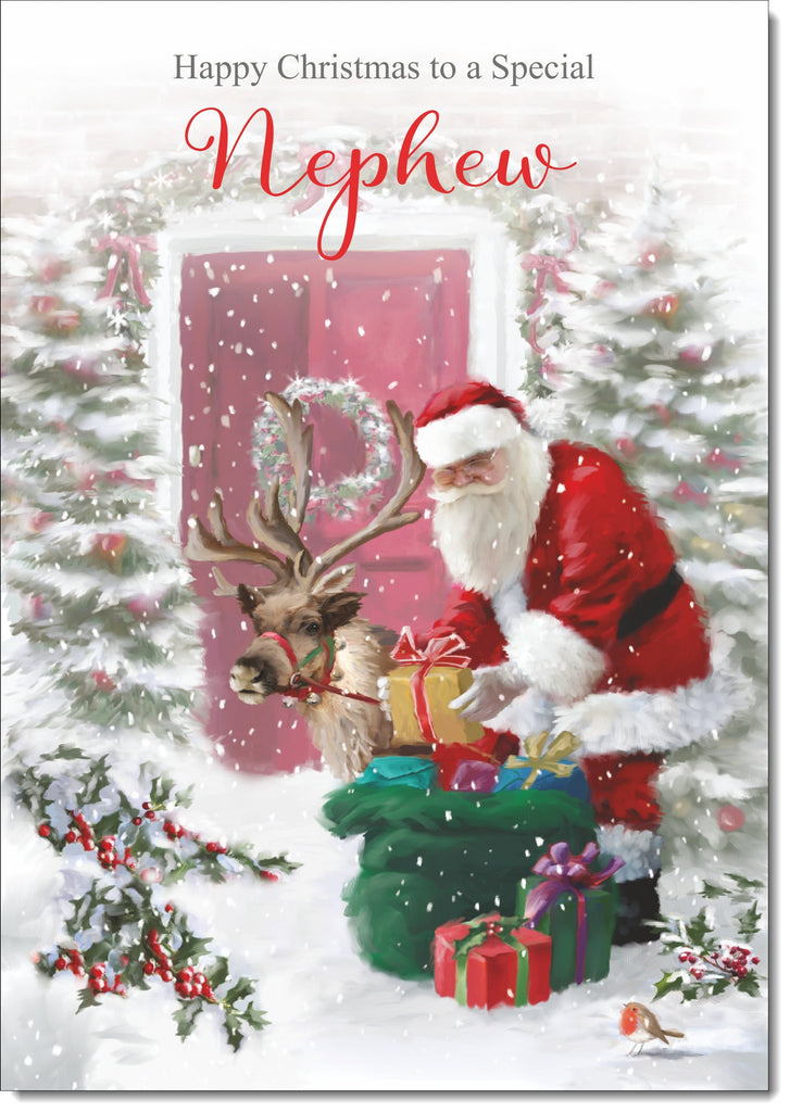 Nephew Christmas Card Santa's Sleigh Victorian Style
