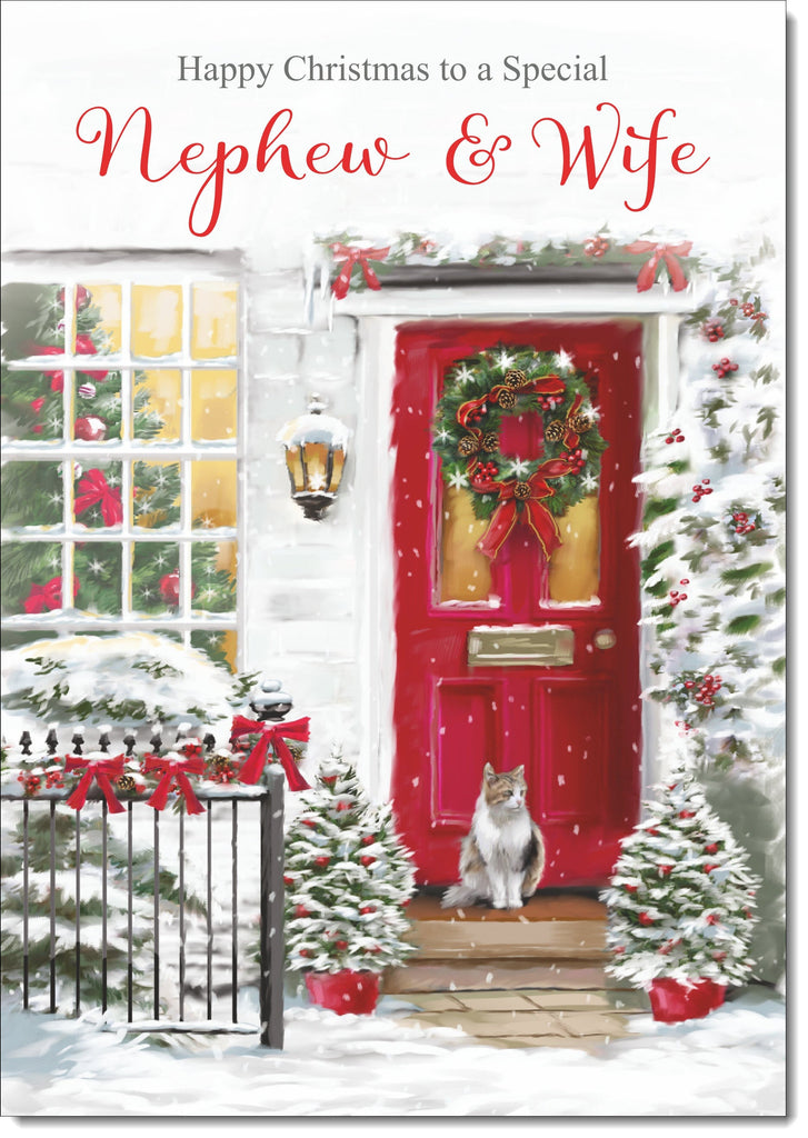 Nephew & Wife Christmas Card Cat by Snowy Red Door